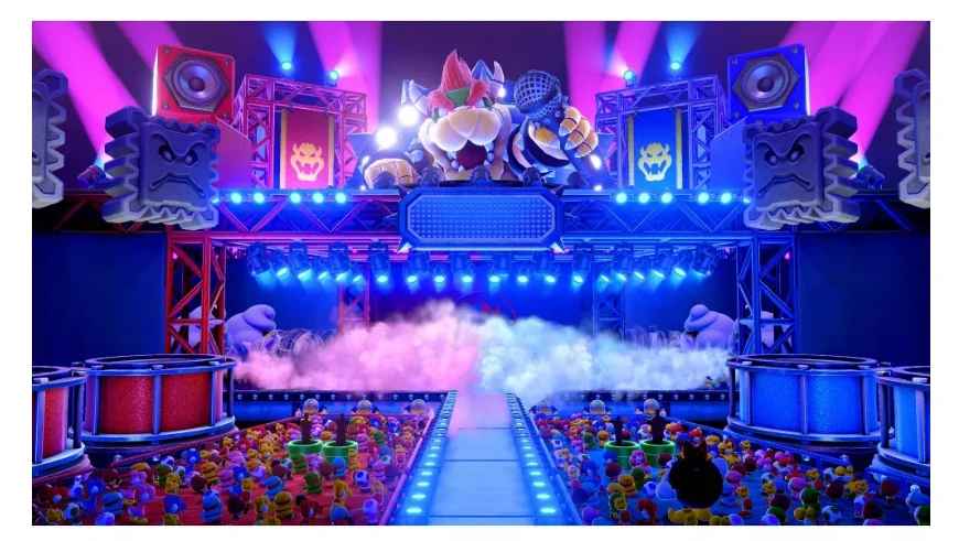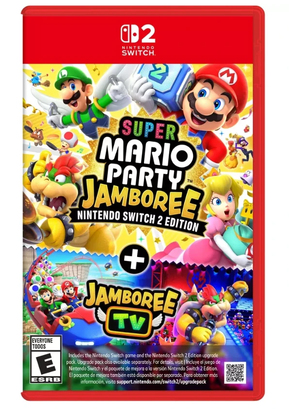 ¡Este jamboree repleto acaba de ser aún más grande, solo en el sistema Nintendo Switch— 2! ¡Reúne a tus amigos, elige una tabla y haz una fiesta de Mario! Elige tu personaje, tira algunos dados y compite en una variedad de minijuegos para ver quién puede obtener la mayor cantidad de estrellas. Desde correr a través de carruseles hasta control de movimiento* minigolf, el juego principal tiene siete tableros y más de 110 minijuegos para jugar...¡y el nuevo modo Jamboree TV agrega aún más minijuegos diseñados para aprovechar las características de Nintendo Switch 2 como los controles del mouse! Exclusivo para Nintendo Switch 2 Edition, Jamboree TV te presenta a ti y a tus amigos como concursantes en un programa de juegos presentado por Toad. Asuma una variedad de desafíos junto con Mario y amigos que usan el controlador Joy-Con™ 2 para los controles del mouse, el micrófono incorporado del sistema para responder a sus sonidos y más. ¡Añade una cámara USB-C® compatible (vendida por separado) y otras caras de jugadores’ aparecerán durante el juego—like cuando están coronados por ganar minijuegos o rodeados por las monedas que han ganado! Con 22 personajes jugables, Reglas Pro para una competencia más seria y un modo local para un solo jugador, ¡hay algo para todo tipo de asistentes a la fiesta! Póngase en práctica con las características exclusivas de Nintendo Switch 2 en Carnival Coaster y Bowser Live ¡Entréchate y ve a la Coaster Carnival cooperativa! Use los controles del mouse de los controladores Joy-Con 2 para apuntar a los malos voladores e intentar derribarlos. También habrá un minijuego de control de ratón cada vez que la montaña rusa ruede en una tubería. ¡Tendrás que trabajar juntos para mejorar tu puntaje! ¡Sube al escenario y conviértete en la estrella de la actuación en Bowser Live! Compite en dos equipos y asume desafíos de minijuegos salvajes centrados en el sonido y el movimiento. ¡Conecta la cámara Nintendo Switch 2 o una cámara USB-C® compatible** (cada una se vende por separado) para proyectarte a ti y a tus amigos en el lugar del juego! Tome la diversión en línea en Koopathlon y Bowser Kaboom Squad Corre en el tablero de la fiesta en Koopathlon, una primera serie de 20 jugadores en línea** competencia para ver quién puede acumular los puntajes más altos en minijuegos como el acelerado Lane Change. Cuanto mayor sea su puntaje en cada ronda, más rápido llegará a la meta. Si el juego cooperativo es más tu estilo, toma un Impostor Bowser en el modo Bowser Kaboom Squad en línea para 8 jugadores. Ambos modos en línea tienen clasificaciones mundiales para que pueda ver cómo se compara con los mejores. ¡También puedes jugar el modo Mario Party estándar con amigos*** y familia***, u otros en línea! Muévete en Rhythm Kitchen, Toadats Item Factory y Paratroopa Flight School ¡Los juegos de control de movimiento están de vuelta! Cocine al ritmo en el programa de cocina Rhythm Kitchen, ayude a los Sapos a juntar artículos de fiesta en Toadads Item Factory y vuele por el cielo en Paratroopa Flight School. También hay minijuegos de control de movimiento en el modo Mario Party estándar que puede activar o desactivar. Disfruta del juego Mario Party más atractivo hasta ahora Jamboree TV admite una resolución más alta tanto en TV como en modo portátil. ¡Disfruta del mundo de Mario Party con un mayor nivel de detalle! Chatea con familiares y amigos mientras compartes tu pantalla en línea usando la función GameChat de Nintendo Switch 2 systems Chat** usando el micrófono incorporado del sistema, y vaya a la cámara con una cámara USB-C® compatible. ¡Algunos modos incluso te permiten poner tu cara en el juego junto con divertidos efectos especiales! Comparte parte del juego con cualquier persona que tenga un sistema Nintendo Switch o Nintendo Switch 2 Si tienes el sistema Nintendo Switch 2 y el juego Super Mario Party Jamboree – Nintendo Switch 2 Edition + Jamboree TV, puedes compartir parte del juego con cualquiera que tenga un sistema Nintendo Switch o Nintendo Switch 2 usando GameShare. Con un juego, hasta cuatro personas pueden jugar al tablero Tree Party de Mega Wiggler y 30 minijuegos en el modo Mario Party.